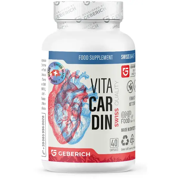 VitaCarDin es un complemento alimenticio en cápsulas con extractos vegetales, aminoácidos, minerales y vitaminas.